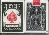 These black rider backs are not commonly sold in the united states thus are rare and hard to find These are the same as the well known and world famous blue and red rider back decks only the color is different Rare new sealed deck of cards Poker Size 35 x 25 Regular Index Bicycle Black 808 Ri Read More..
