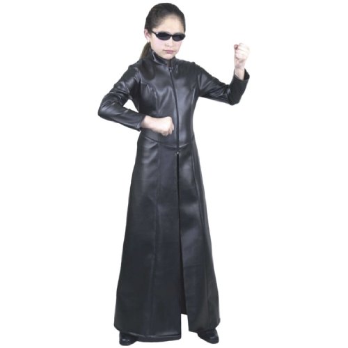 Now available for girls This full-length pleather coat is ideal for that Matrix look Street Fighter costume includes Full Length Pleather Faux Leather Coat Glasses not included Child costume includes Full Length Leather Coat X-Sm - Child 4-6X Sm - Child 6-8 Med - Child 8-10 Lg - Child 10-12 Read More..